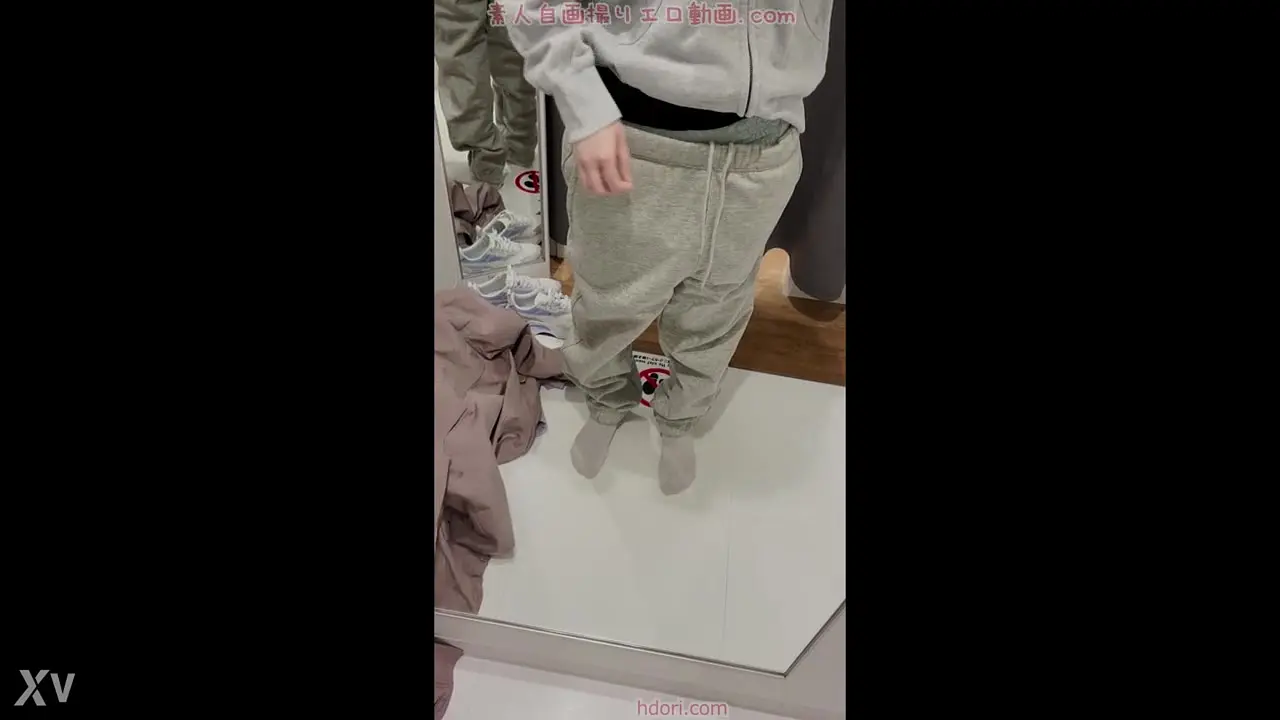 A young Japanese guy takes off his pants in a clothing store fitting room. He then takes a selfie of himself holding up his white panties. The focus is on his toned body and the alluring glimpse of his unexposed cock.