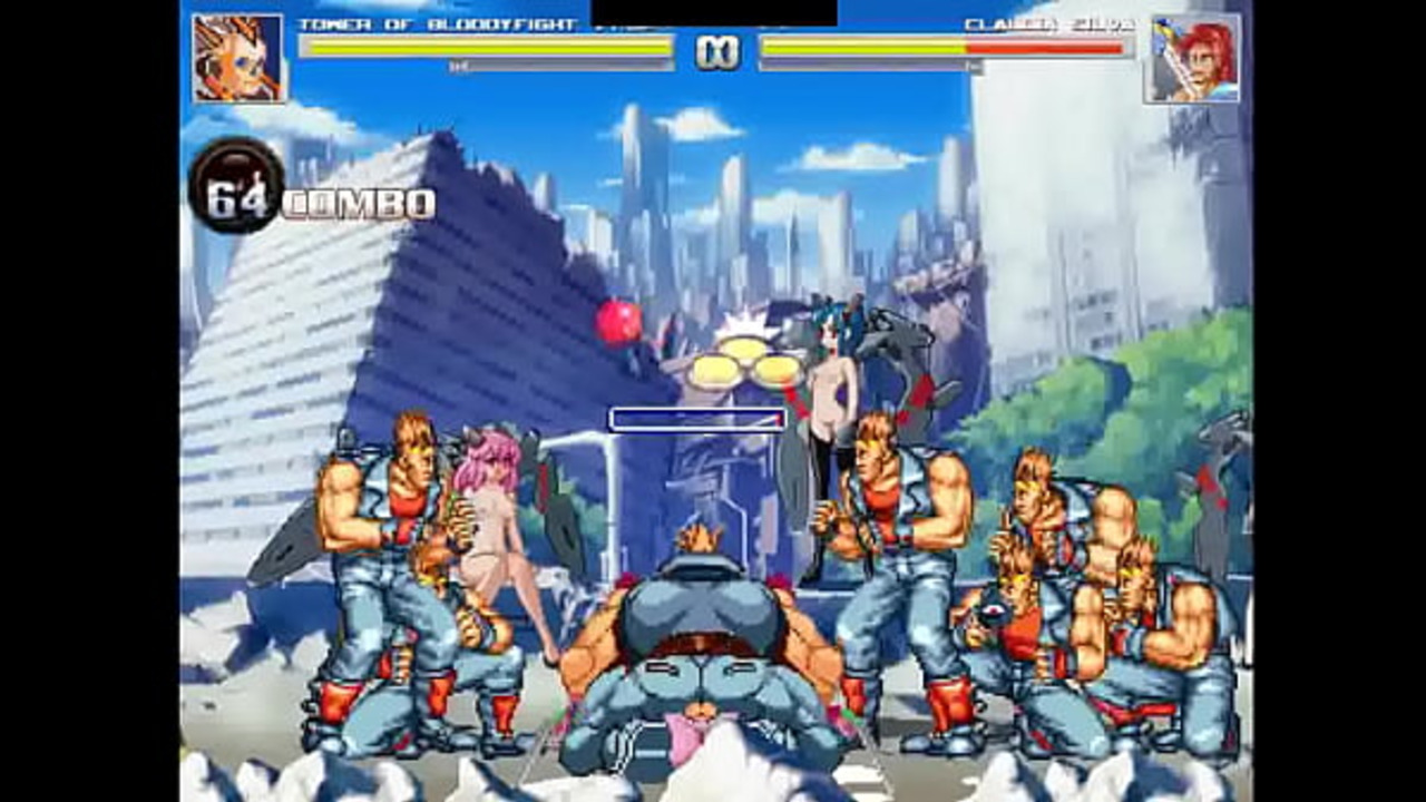 In this Mugen-style hentai game, a group of guys take turns fucking Claudia in doggystyle. She gets pounded and filled with cum before giving a sloppy blowjob to one of them.