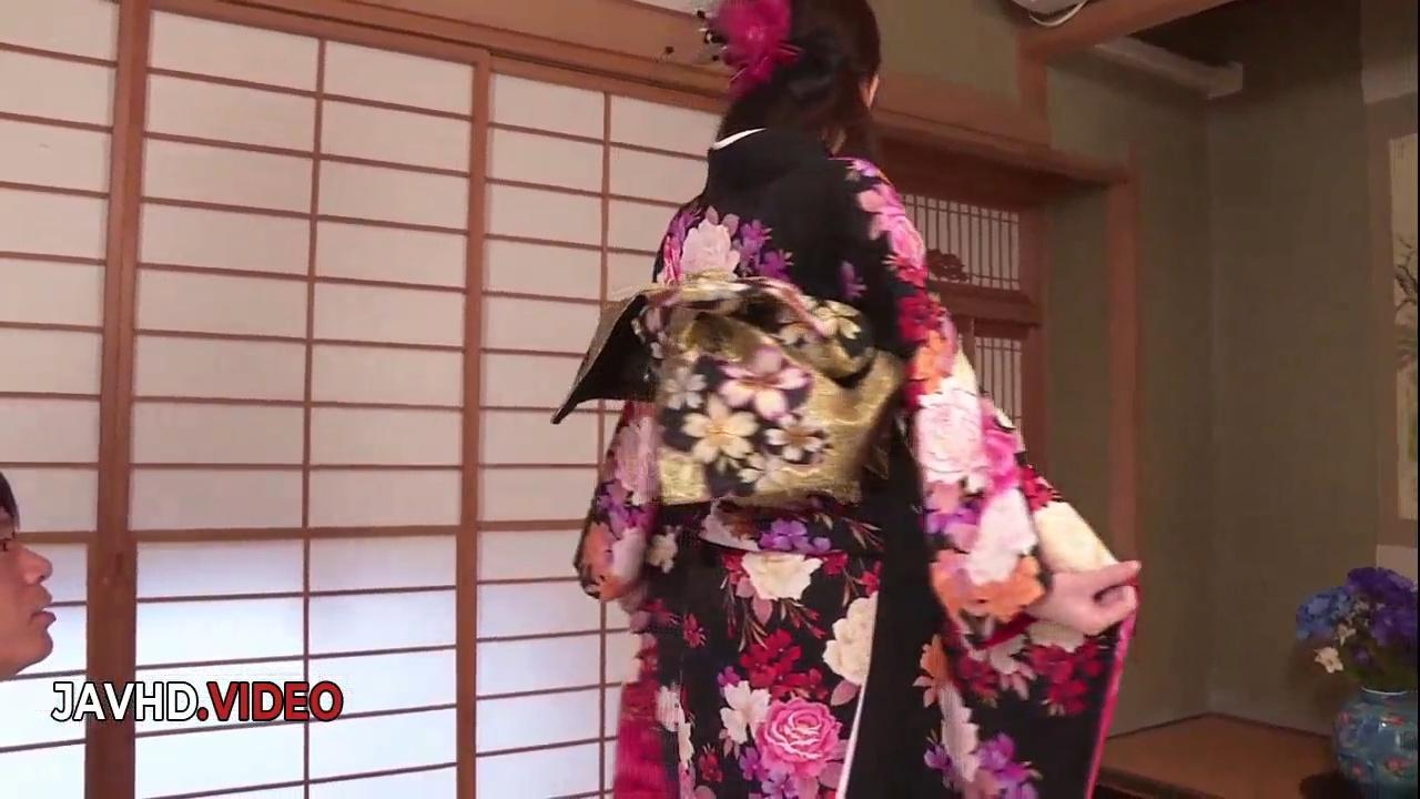 Wild Japanese woman in kimono loves intense fucking and deep creampie